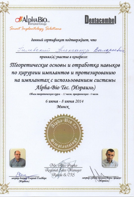 Гилевский Александр Валерьевич, закончил стоматологический факультет Белорусского государственного медицинского университета в 2010 году.